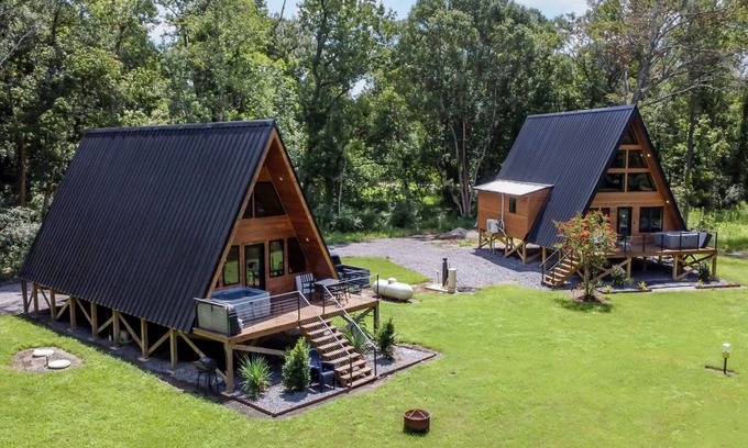 2 New A-Frames by Rip Van Winkle w/Hot Tub | Cabin in New Iberia
