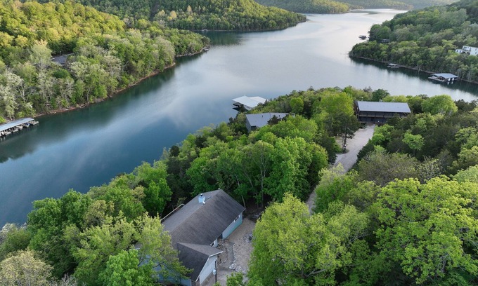 Roomy Beaver lakefront home for rent on a beautiful cove near Eureka Springs, AR. Bring your boat and enjoy all kinds of water activities on Beaver Lake or visit historic downtown Eureka Springs. Enjoy the leaves changing colors in the fall, or snuggle up with a blanket in the living room during the winter months.