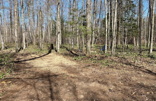 Primitive wooded campsite in a Maple-Beach forest. One of four campsites available on this property. They are all about 150 feet from each other. These campsites are about 1/4 of a mile down on a wooded trail on my 20 acres of land. The campsite has its own campfire pit, flat spot for a tent (tent not included) and places to park. Smaller RV's or Popup campers will fit well in this site. Fresh drinking water is available at the beginning of the trail. The port a poty is shared with the other four campsites. There are wooded trails on the property as well.