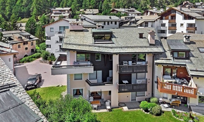 The Chesa Balcunet is situated in the area of Uerts, on the edge of the village centre of Champfèr, in a quiet location. Cross-country skiing trails, hiking and cycling paths are in the immediate vicinity. Bus stop, children's playground and grocery shops can be found in the village, about 5 minutes' walk away. The Hotel Europa with restaurant, bar, indoor swimming pool, sauna, fitness room and a large terrace with sun loungers is also in the immediate vicinity. Cable car, tennis courts and surfing facilities are approx. 3 km away. Champfèr is approx. 2 km from St. Moritz and from Silvaplana.