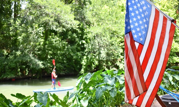 With a Safari Tent Cabin rental, you & your guests will enjoy the beautiful scenery & peacefulness of Son’s Rio Cibolo which features 2 miles of the gorgeous Rio Cibolo Creek with its blue spring water, and tons of activities including kayaking, paddleboarding, fishing, swimming & more!! After a fun filled day, sit ‘round the campfire at night & gaze at the big, bright, Texas starry sky! We are surrounded by large ranches which makes for a great outdoor get away from it all experience! Our Safari Cabins are fully furnished, air-conditioned/heated and have everything you need to stay comfortable including foam mattress beds, linens and towels, kitchenette, comfortable outdoor furniture, hammock, firepit, bbq pit & more! If you want to enjoy the great Texas outdoors without the setup and hassle of tent camping, while having all the creature comforts of home, our Safari Tents are for you! Safari Tent Cabins come with: 4 full sized beds with foam mattress and a futon couch. They also feature a kitchenette with mini fridge, coffee maker, hot plate with pots and pans and blender. We do not provide silverware and dinnerware, so be sure to bring these, though linens and towels are provided. For inside entertainment and relaxation, guests will find a smart TV, WiFi & DVD player. Outdoor amenities include: comfortable wicker seating, hammocks, fire-pits, BBQ pits, picnic table, outdoor lighting, water and electricity. The unique design of our Safari Tent Cabin allows you to open up the entire back wall to enjoy an indoor/outdoor living experience, perfect for eating, relaxing and reconnecting with your friends and family. There are 2 - 6-station bathroom trailers by our Safari Tent Cabins (12 lockable, private, full bathrooms in total with hot showers) for your use. We are lucky to have 2 miles of the spring-fed Rio Cibolo Creek for you to explore and enjoy! The Creek has never been known to go dry in this section and the water, being spring fed, it is nearly the same temperature year! The Creek varies in depth from 1 to 8 feet deep along our stretch, there are spots perfect for siting and cooling off or swimming. Guests also get free use of our multiple kayaks & paddle boards! The fishing is fantastic too with large catfish and bass! Families and friends spend countless hours here swimming, kayaking, relaxing, and having fun, in and along the banks of the Rio Cibolo Creek! Son’s Rio Cibolo has lots of amenities off the creek too to enjoy as well, including: 3 pools, 4 hot tubs, basketball court, volleyball court, horseshoe pits, game room with pool table, shuffleboard, foosball, ping pong table, air hockey, horseshoes and more! At night, each cabins has their own firepit so guests can hang out around the campfire under the stars, roasting marshmallows and having fun. There are also many picnic tables, BBQ pits, hammocks and comfy furniture located throughout the property to make your stay as enjoyable and relaxing as possible. We have live on-site staff to help with anything you may need during your stay. Located on 100 acre nature resort with 2 miles of creek frontage! Guests can park right next to their cabin. Everything is within walking distance but guest can opt to drive as well. While at Son's Rio Cibolo, guests get to enjoy a free creek-side cabana rental during their stay as well as free kayaking and paddle boarding!