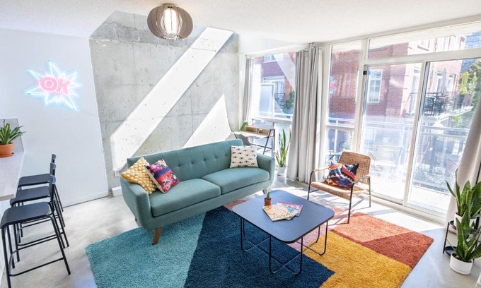 2 Storey Creative Downtown West Loft is a recently renovated apartment in the center of Toronto, 1.8 miles from Sunnyside Beach and a 16-minute walk. The air-conditioned accommodation is 1.5 miles from Hanlan's Point Beach, and guests can benefit from private parking available on site and free Wifi. The accommodation offers an elevator and full-day security for guests. Offering a balcony and garden views, the spacious apartment includes 2 bedrooms, a living room, flat-screen TV, an equipped kitchen, and 2 bathrooms with a bath and a shower. Towels and bed linen are offered in the apartment. The accommodation is non-smoking. Exhibition Place is 1.3 miles from the apartment, while Budweiser Stage is a 19-minute walk from the property. The nearest airport is Billy Bishop Toronto City Airport, 1.9 miles from 2 Storey Creative Downtown West Loft.