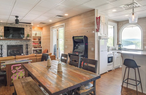 Experience an all-season getaway at 'Carefree on the Caney!' This vacation home on Center Hill Lake’s headwaters boasts 7 beds, 2 full baths, 2 half baths, indoor fun with ping-pong and arcade games, a large outdoor space for crisp fall evenings, and 3 fireplaces. Whether you're cooking in the kitchen, playing games inside, or roasting s’mores by the firepit, there’s something for everyone!