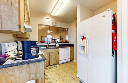 Inside, you'll find modern amenities such as WiFi, central air-conditioning, and a washer/dryer to make your stay as comfortable as possible. When you aren't out sampling the local cuisine, the kitchen is well-equipped to handle your at-home cooking needs. Snack at the breakfast bar, dining room table, or alfresco among the palm trees.