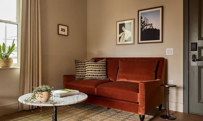 Anna & Bel, located in the heart of Fishtown, seamlessly blends its historic roots with contemporary comforts. The One-Bedroom Queen Suite provides a cozy bedroom with a queen bed and a separate living space adorned with thoughtful design elements and modern amenities.