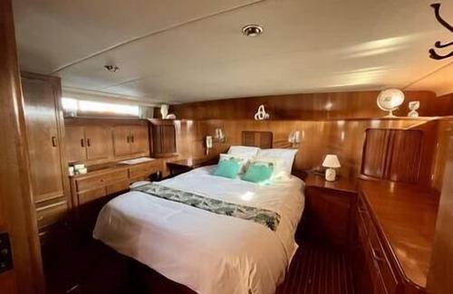 Imagine yourself on this 1991 yacht, for a weekend or more... You'll enjoy the very special atmosphere that prevails in marinas. Whether you come alone or in a group of 8, you'll be the only master on board! Quiet and close to all amenities - town center, transport, station, etc. - you'll then climb back on board to enjoy at least 2 nights of peace and quiet.... We welcome you in one of the 4 cabins of our 18m yacht (or trawler if you prefer), docked in the port of Sète. Built in 1991, this boat can accommodate up to 8 people and is very spacious and well equipped: living/dining room, kitchen (4 induction hobs, microwave oven, fridge-freezer, dishwasher, coffee maker, toaster, kettle, etc.), 2 bathrooms with washbasin, shower and WC. 20-minute walk to all amenities, restaurants, stores, free secure parking. Base rate €350 for 2 nights in double cabin + €120 for 2 nights per additional double cabin + €150 per additional night per cabin payable on arrival. Decreasing rate from 4 consecutive nights. Each cabin is designed for 2 passengers. If you come with 1 or 2 passengers, we can provide you with the Captain's cabin and en-suite bathroom. For 3 or more passengers, you'll be able to choose the additional cabin(s) you'd like us to prepare for you before your arrival. The second bathroom is also at your disposal. The saloon/kitchen, located between the captain's cabin and the 3 forward cabins, offers you a spacious, well-equipped and highly functional living space. The decks and terraces are entirely at your disposal. All are equipped with awnings to protect you from the sun (or any inclement weather). The covered sundeck at the rear of the boat is an ideal space, whatever the weather. As for the flybridge, it's THE place to enjoy the sunsets. To accompany you in this moment out of time... free secure parking for several vehicles in front of the boat, plancha, sun loungers, paddle, beach accessories, board games and connected TV will also be part of the party ;) You can come on foot, by cab, by public transport, by train, by plane or with your own vehicle! If you bring your own vehicle, parking opposite the boat in the private, secure marina is free of charge. . By train: 15-minute walk . By plane: allow 30 minutes by car from Navï to the airport and 1h45 by train from the airport. . On site on foot: access to the town center in 15 minutes, first shops less than 10 minutes away, 20 minutes from Les Halles, which are open every day of the year from 7am to 1pm, and until 6pm during the holiday season. . Public transport (bus and navi/bus) is less than 5 minutes' walk away. . By bike: First electric bike rentals are a 20-minute walk away and less than 5 minutes by car. We'll be available by SMS, telephone and even video at any time during your stay. Unfortunately, we won't always be able to meet you in person, but there will always be a host on hand to explain how the boat works, and give you all the details you need for your stay on the quayside and for your excursions in and around the city. Directly on the Port, you'll have access to restaurants and stores. The first beaches are 20 minutes away by bike, 15 minutes by car and 40 minutes on foot. Slightly set back, you'll enjoy a peaceful night's sleep. The boat is located on a secure dock. Access is via a gate that can only be opened with the use of a badge. You can park up to 4 vehicles in front of the boat. We are 2 minutes from the station by car and 10 minutes on foot. Montpellier airport is about 35km away by car. Public transport is just a few meters away, with buses and boat-buses departing just a few meters from Navï. The best thing about the boat-buses: they're free on Wednesdays from May to September (market day), and on concert nights in July and August! A bike rental service is also just a few meters away. There's a shuttle boat to the city center and back just 5 minutes away, or you can walk to the city center in 20 minutes. For your comfort, beds will be made on arrival and towels provided. Breakfast is available on request.
