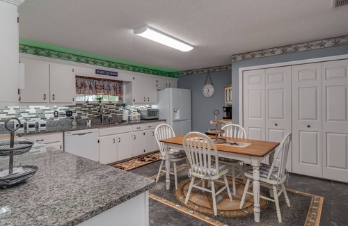 lovely large eat in kitchen lovely front porch with pavers extra large front patio. large living room, large dining room on one side of the home AND A LARGE GAME ROOM( VINTAGE BRUNSWICK POOL TABLE,BAR,ETC,ETC. ON THE OTHER SIDE OF THE HOUSE separate queen size bed for 2 and also 2 separate bedrooms with twin beds. 2 full baths. includes use of barn stalls and turnout pastures tack room feed room and washer/dryer. also 2 wash stalls with instant hot water.quaint,lovely decorated and quite comfortable.7 paddocks for your horses to graze on and 8 lovely stalls in the barn.adjacent barn apartment sleeps 4 can be contracted for an additional $130 per night .take advantage of these summer season special discounted rates NOTE:"NO SMOKING INSIDE ANY BUILDINGS PERIOD" THIS IS DECORATED in western country style motif,very tasteful very cute,and VERY comfortable in the deep leather couches and chairs throughout.