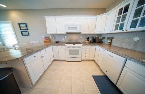 Cheerful and freshly decorated, the top floor living space offers a Gulfside living room with large HDTV and Blu-ray DVD player, open dining area with a picturesque Gulf view and a spacious kitchen. Relax in the breeze on the covered deck overlooking sparkling Gulf waters, lounge with a beach read from our extensive book library or spend the day beachside. The well-equipped kitchen offers plenty of room for multiple chefs, a dedicated pantry and new appliances. For added convenience, we have a standard 12 cup coffee maker and Keurig coffee maker.