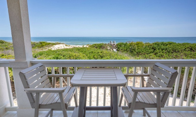 This 5BR/4BA stunning BEACHFRONT home is nestled alongside high dunes and natural vegetation in a private neighborhood known as the ‘Bluffs’, located within the prestigious St. George Plantation community.