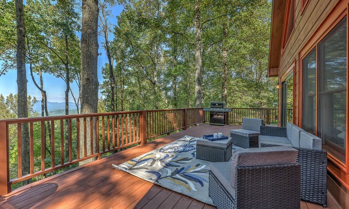 Admire the magnificent mountain views from sunrise to sunset at our beautiful cabin on top of Walnut Mountain. From the moment you walk in the door you are welcomed with stunning views with Mountain Views with Floor to Ceiling Windows. Our paradise offers Solitude with incredible views with beautiful scenery with Views of mountain from every single bedroom which makes you feel like you are wrapped in mother nature. Our cabin offers large wrap around deck, stocked kitchen with pot and pans etc..