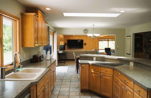 Escape to the serene Emerson Lake House, nestled on a sprawling 5-acre property in Branch, MI. This idyllic retreat boasts 200 feet of private beach along the tranquil Emerson Lake. Enjoy the great outdoors with ample seating areas. Take advantage of the provided kayaks and aluminum boat. Swimming and fishing are just steps away from your doorstep. The house features over 4000 square feet of living area, this retreat is ideal for accommodating large groups. The peaceful atmosphere of this fantastic property makes it the perfect retreat for your next getaway. It's easy to see why you'll be able to unwind at our place. Create unforgettable memories now!