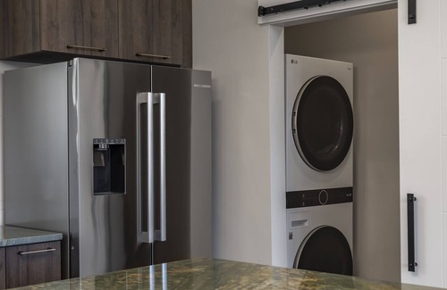 LaFave rental units are very spacious: the average suite size is 1252 sq ft. LaFave units feature modern design and brand-new full-size kitchens with stainless appliances and quartz countertops. The units include a dining table, walk-in tile showers, washer/dryer, private bedrooms, and a living room. Each unit in the complex includes a private patio or deck with stunning views of the soaring red sandstone cliffs of Zion.
