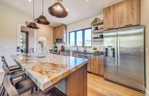 Echo Canyon Villa features modern design and has 2 bedrooms and can sleep 2-6 guests.