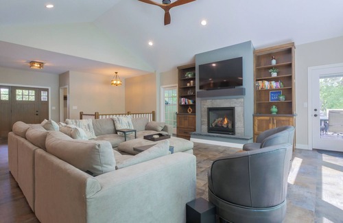 No details were overlooked including the modern kitchen that has everything you'll need to enjoy your stay. The main level bedroom suite has a king size bed. Three of the four lower level bedrooms have queen beds, while the fourth lower level bedroom has a queen and a twin bunk bed.