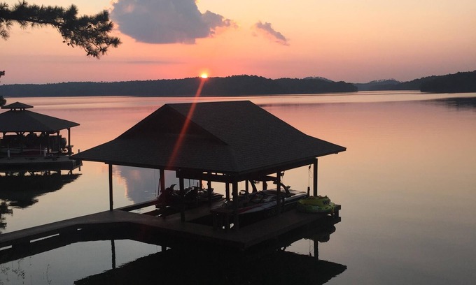 Large (over 4000 sq ft), beautiful 5 bdrm/5 bath house with fantastic views in a great location. The house is in a quiet cove for great swimming but close to open water for easy boating activities. Unobstructed views across the lake facing east making for great afternoon and evenings on the patio taking in the scenery. Basement has a wet bar and a pool table with a sound system that plays indoor and outdoor. Sleeps 13 in beds. You can add two more if you bring a blow up mattress.