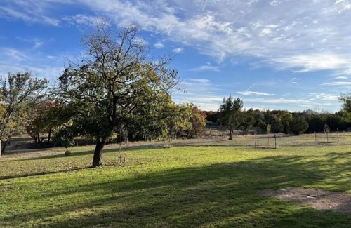 11 acres of beautiful TX hill country. 1 mile to town- 3miles to Starbucks, restaurants and grocery. We have a community fire pit, pond, tons of wildlife, bee hives, chickens and bluebonnets. Lots of shaded and secluded tent spots and plenty of space for your RV. 3 RV spots available with 110 electric. One covered spot available (where the boat is in the pictures). Lots of open space for viewing the eclipse as well. We are excited to be a fun and helpful host for this once in a lifetime event.