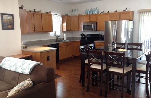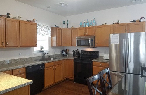 Beautiful open concept townhome. All the amenities you could ask for while being on vacation...2-1/2 blocks to the beach 1 block to the bay! Three bedrooms, 2 full baths and an outdoor shower with a foot faucet to rinse the sand from your feet after the beach. The three bedrooms and 2 Queen size memory foam sofa beds sleeps 10. Plenty of room for a bigger family; will sleep up to 12 with air mattress. Full size washer and dryer on the first floor and large stocked kitchen for you to prepare meals. Full size natural gas grill on rear deck right through kitchen sliding doors. EP Henry back patio with Adirondack chairs for your enjoyment night or day. All 3 decks feature patio furniture as well. Outdoor shower has hot and cold water. Parking for 5 with additional off street parking available. Beach tags (not guaranteed) and beach chairs included, just bring linens and towels. You won’t want to miss the spectacular sunsets at the bay each night! The bay also has a fenced in swimming area for youngsters and large gazebo to watch your young swimmers from.