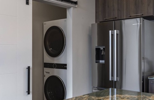 LaFave rental units are very spacious: the average suite size is 1252 sq ft. LaFave units feature modern design and brand-new full-size kitchens with stainless appliances and quartz countertops. The units include a dining table, walk-in tile showers, washer/dryer, private bedrooms, and a living room. Each unit in the complex includes a private patio or deck with stunning views of the soaring red sandstone cliffs of Zion.