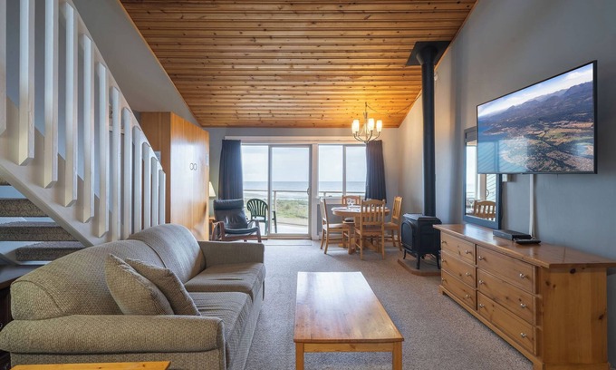 This beautiful Upper Beachfront Suite at Shorewater Resort is located in Qualicum Beach, British Columbia, overlooking the protected waters of the Strait of Georgia. This suite offers a private balcony and direct beachfront access. You’ll love the loft space which offers a queen size bed in addition to a Murphy Bed and sofa bed on the lower level. As a guest of the resort, you have direct access to one of the finest beaches on the Island.