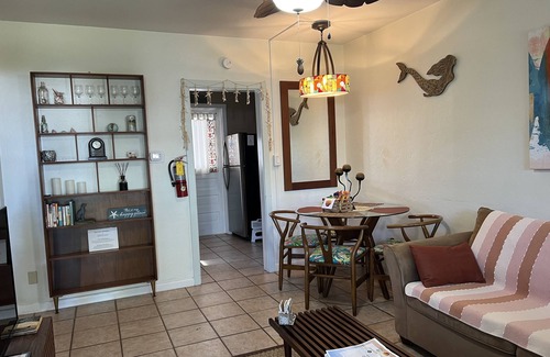 Updated 1940's beach cottage with all the comforts of home! One of THREE cottages available (VRBO #501808, #621877 and 827904). FOR LONGER RESERVATIONS (28 nights+) PLEASE SEND A MESSAGE FOR RATES. Ground floor fourplex, Your private residence includes, WIFI, your own fenced-in and private, beautifully landscaped back yard with deck / dining area with charcoal BBQ. Two private bedrooms, master with King bed accommodations and HDTV, second bedroom has 2 twin beds with 32' HDTV, and full size sofa bed in living area when necessary. All HDTV's include Roku with Netflix subscription. Our cottage includes your own stacked washer and dryer, beach chairs and towels, Kitchen with oven/microwave and all the amenities of home! Charcoal grill for your outdoor barbecues, and Netflix subscription for those lazy nights inside! Your own private entrance, walk across the street to outdoor terrace dining! Rent a bicycle/surfboard/paddleboard on our block or take a surf lesson! Walk for coffee, breakfast, dining and entertainment on Cottage Row! Too many restaurants/coffee shops within walking distance to name, you can also enjoy a little of the Cocoa Beach nightlife without having to use your car! Located on A1A north, in the center of downtown Cottage Row district. Fully Licensed.