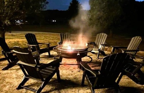 **Firepit Area** Gather around the firepit with seating for 8, firewood provided, and all the fixings for a fun s’mores night.