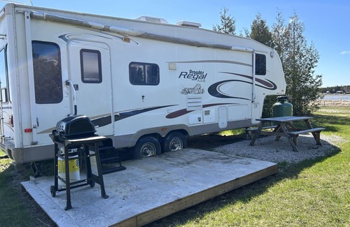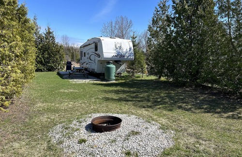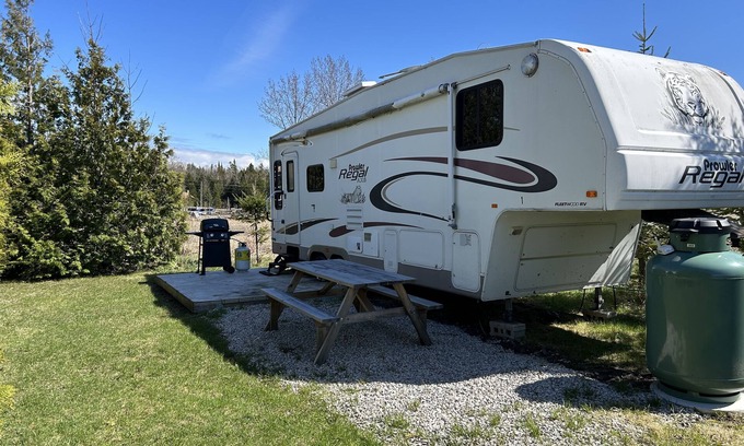 Reel Paradise has a lovely view of Lake Huron. Come enjoy the beautiful sunsets! Includes an outdoor picnic table, bbq with propane and a fire pit. Enjoy the spacious kitchen and living area, separate bedroom with ample storage. Sofa pulls out into a double bed. Ideal for a family with small children or 3 Adults . 4 piece bathroom area.