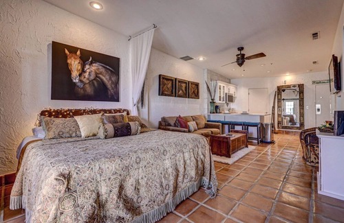 Spanish Rose w/Private Entrance, New King Bed w/Luxury Linens, Large Bathroom w/Jacuzzi, Full Kitchen w/New Appliances, High Speed Internet, Smart TV, Fenced Covered Patio w/Fire Pit and BBQ. Resort includes 2 Large Pools, Hot Tub, Pickle Ball Courts, Fitness Center, Laundry Room, Ice Machine, & Spa. Perfect location and very peaceful with amazing views. Best kept secret in St George - everything you would want for an upscale relaxing getaway! Book Today & SAVE w/NEW listing discount!