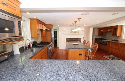 Welcome to the Ebenezer Hinckley House, a large antique home built in Circa 1690. Walk through the side entrance into a massive updated kitchen with center island, counter seating, granite counter tops and a 6 burner gourmet stove! Kitchen table over looks the beautiful Cape Cod landscape. Half bath off the kitchen. Two doors off the back of the house open to a large expansive deck. Walk into the main sitting room with oversized fireplace and baby grand piano. Two bedrooms are just around the corner, one with a Queen bed and one with 2 Twin Beds. You will find three additional bedrooms on the 2nd floor. All bedrooms feature a fireplace, but Sorry, NOT FOR USE!