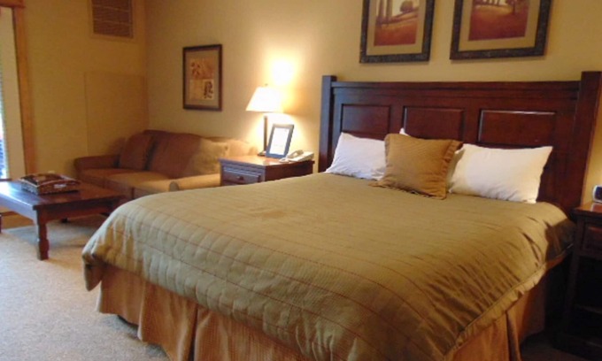 This Family Studio has a One Bedroom Lockoff attached to it if you want to rent both. The One Bedroom Unit is #290. The Family Studio sleeps 4 and is located in building D and overlooks the Hot Tubs and has an amazing view of the Ski Hill. It is part of the Morning Star Lodge Waterpark complex. With a kitchenette, King Bed, Queen sofa sleeper this unit has everything you need at a very affordable price.