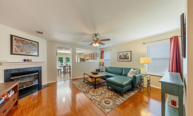The home sits a few blocks from I35 so it's about 10 -20 minutes from everything you want to do- Lots of local restaurants nearby