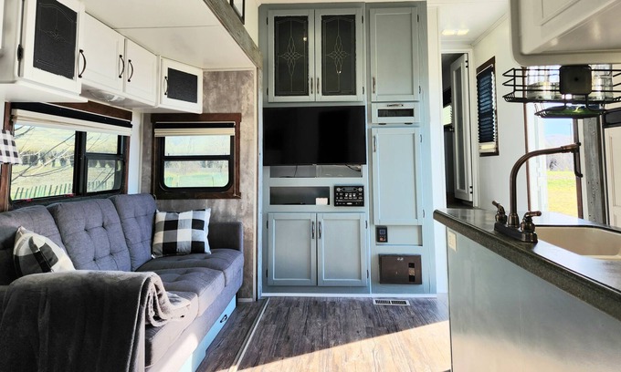 I know, I know... a camper? Don't be so quick to judge! Enjoy the peaceful country life while staying just minutes from downtown Prosser and the freeway! This giant camper has two bedrooms, two bathrooms, and the perfect living space. Imagine being able to make a snack, relax at the dinner table, and sprawl out on the couch without taking more than three steps! You'll love the smart TV, the private outdoor lounge area, and the quiet farm-life vibe. Give tiny living a try, you might just like it.