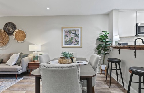 The space is dog-friendly with a pet fee of $100 per dog, with a limit of 2 dogs. Pets must be 60lbs or less to help us maintain high cleanliness standards. By booking, you agree to take responsibility for any damage or extra cleaning caused by your dog during the stay. Please clean up after your dog using doggie bags, or a $150 fee will be assessed. **Note: Emotional Support Animals (ESAs) are also subject to the pet fee.