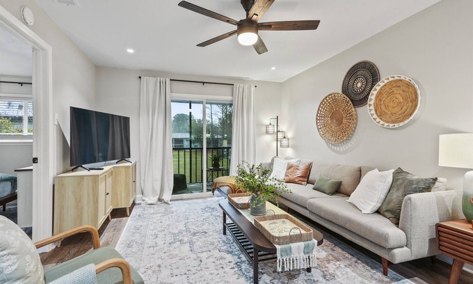 Evergreen Hideaway is the perfect haven for both vacationers and temporary workers seeking comfort and convenience in Savannah, GA. This stylish 2-bedroom, 2-bath condo is situated in a quiet residential area within a serene complex. The open-concept living area provides ample space for relaxation and entertaining, while the fully equipped kitchen makes meal preparation a breeze. Unwind on the private screened-in porch, ideal for morning coffee or evening wine. Each bedroom features a cozy queen bed for a restful night's sleep. Modern amenities, including a smart TV, high-speed Wi-Fi, and in-unit washer and dryer, ensure all your needs are met. With access to community amenities like a pool, yard, and free parking, Evergreen Hideaway offers the perfect blend of comfort and convenience for your stay. Evergreen Hideaway offers all-inclusive utilities (internet, electric, water, sewer, trash, and pest control), ensuring a hassle-free stay.