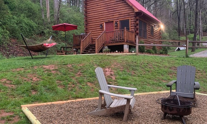 The driveway has easy parking, and the roads are easy for navigating and reaching our little log cabin. Conveniently located off Highlands Rd just 6 mins from Main Street Franklin, 3.5 miles from Walmart and 13 miles from Dry Falls Highlands.