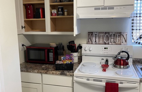Come stay at this stylish & cozy condo, for your lucky getaway. This 2bedroom/2full bath condo sleeps 4 comfortably. It is walking distance from restaurants, bars, & gambling at the famous Texas Lucky Eagle Kickapoo Casino. This condo features all new furniture and fixtures. Has a living area with fully furnished kitchen. Refrigerator, stove, microwave, & free WiFi are some of our great amenities. Contains a washer and dryer with 3 TV’s, 1 in each bedroom & 1 in the living room. Make our home yours!!