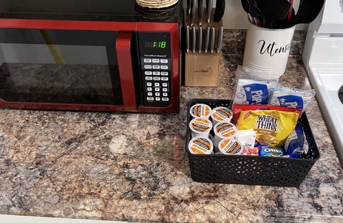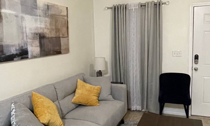 BRAND NEW UNIT with 2 bedrooms, 2 full baths, Master bedroom with a king bed, TV, long mirror in master bath and big walk-in closet and more. Bedroom 2 offers queen bed with spacious walk- in closet, TV, night stand, lamp, mirror, extra pillows and more. Equipped kitchen includes refrigerator, stove, microwave, coffee maker, toaster, utensils, cups, plates, pots, pans and other kitchen essentials. Living room with sofa, TV, lamp. Washer and dryer, iron, iron board, detergent, softener, hangers. Towels, Shampoo, conditioner, body wash, bath essentials. You will love this place .