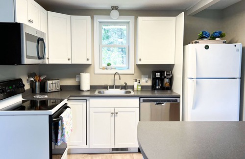 Private and cozy, newly renovated 1900's home with two bedrooms with a queen size bed in each and 1.5 baths. Step out your front door to swim, sunbathe or kayak on a beautiful stretch of the Niantic river with private dock and mooring. After a full day, enjoy a quiet dinner at the patio table or glass of wine on the front porch while watching the stars come out over the water. Fully renovated kitchen, large screen TV, Board games, puzzles + Adult/Kids books. There is a desk set up in one of the bedrooms if you need to work remotely while away. A Queen size pull out couch with mattress topper is in the living room. A pack n play and highchair are available if you are traveling with small children.
