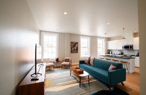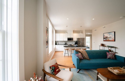 Experience all historic Martindale has to offer at the Western 24 Luxury Lofts. Located on the second floor of the fully restored Martindale Motor Company building, this 2-bedroom | 1.5-bath vacation rental offers a stylish stay in a Texas Registered Landmark. Amenities include a full kitchen and even a washer/dryer. Come explore the charm of our authentic community, where you can shop, enjoy a craft cocktail, dine and experience great live music just steps away.