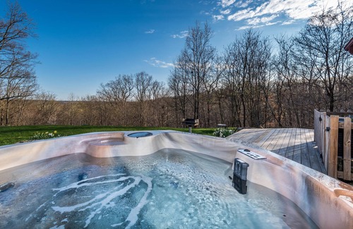 What a lovely, secluded setting awaits the fortunate guests selecting Dogwood Point for their getaway spot. A pretty drive along a Brown County ridge top will deliver you to a rustic log cabin, surrounded by native hardwoods and lots of blue sky.