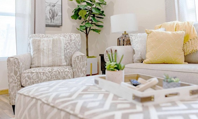 The home features a smart TV in the living room. You may access any of your favorite streaming apps on the TV, but don’t forget to logout when you leave. The home is also connected with high speed cable internet with Wi-Fi.