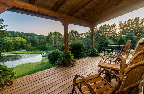 Tucked away on a pretty country lane sits the cabin called Big Buck…a place where the nature lover will find numerous outdoorsy things to do. A small pond just outside the front door is stocked with blue gill, bass, and catfish for the fisherman who brings along their favorite pole. Access to Lake Monroe, as well as Yellowwood State Forest are also close-by. Located halfway between Bloomington and Nashville, Big Buck is well situated for folks who want to attend sporting events at Indiana University, as well as hiking, horseback riding, and mountain biking in Brown County State Park.