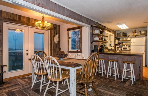 A gas fireplace anchors the living room, and a sofa and several chairs gather around it to make socializing fun. A fully-equipped kitchen with dining area lets you prepare a feast, or simply gives you room for the spread of take-out pizza and pulled pork nachos. Or, enjoy dinner outside.
