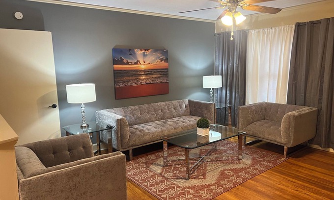 Our charming two-bedroom getaway is located in Albany. Nestled just a short 6-minute drive from Albany State University and 5 minutes from the James H. Gray Sr. Civic Center, this charming property offers the perfect home base for your getaway. Unwind by the fireplace or catch a movie on the smart TV after a day of exploring the beautiful Radium Springs Gardens, just 12 minutes away.