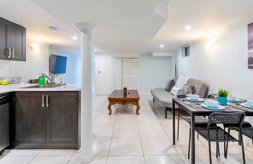 This spacious and cozy two-bedroom basement apartment located in the heart of Trinity Bellwoods, offers all the amenities you'll need during a quick getaway - a perfect space couples, groups of friends, or small families! Enjoy preparing your dinner in your fully equipped kitchen or relaxing on the couch while watching Netflix in your open-concept living room. \