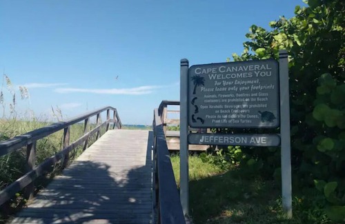 *3 easy blocks to the BEACH, 20 min walk to Cocoa Beach Pier, 5 min drive to Port Canaveral, 20 min to Kennedy Space Center, 45 min to/from MCO Airport, and 50 min to Orlando and Disney!