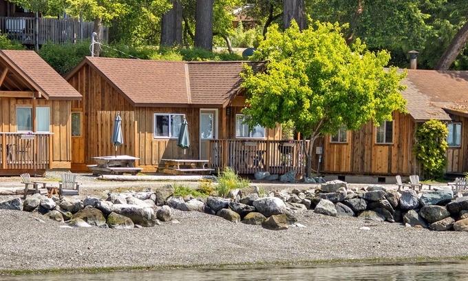 Resort amenities include a communal hot tub, on-site cafe and store featuring gourmet Caffe Vita hand-crafted espresso, local draft beer and wine, Lopez Island Creamery Ice cream by the scoop, delicious oven-baked pizzas made-to-order, and a grocery area including beer, wine, pop, and basic groceries. We also have a waterfront seating and bar area, 400' pier and floating docks, 500' prime west-facing world class sand and pebble beach, and seasonal games including ping pong, volley ball, bocce ball, and more. Kayak and canoe rentals available. Busy season offerings include beach bonfire, daily kids' activities, motor boat rentals, and more!