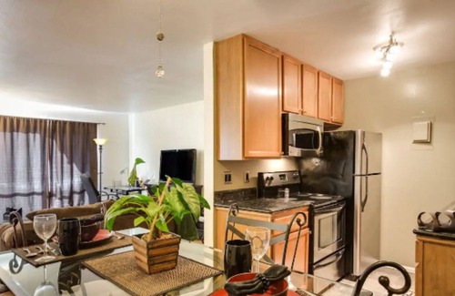 Tastefully furnished, with a bright desk area for your home-office needs, 2 cushy, pillow-top sofas, (one is a sleeper-sofa for your guests), and a nice, 50", flat-screen LCD Smart HDTV to snuggle up and watch a movie. 'Get your gourmet on' in your fully stocked kitchen, with stainless appliances, granite counters, glass-top stove, large pantry, & Pier 1 bistro table. Huge master, and nice 2nd bdrm, with large closet and extra storage locker. Central heat & a/c to keep you comfy, and private parking for multiple cars, a southern facing balcony with patio set & a BBQ to grill under the stars.