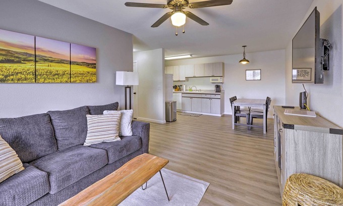 This conveniently located and newly updated 2 bed/1 bath condo offers the perfect location for your visit to the Palouse. If you are visiting to cheer on the WSU Cougs, enjoy stress-free access to the WSU campus from the bus stop right out front. For you Vandal fans, Moscow and the University of Idaho are just 8 miles away. Or enjoy a day trip to explore the Palouse or the beautiful Snake River. Also ideal for extended stays or business trips. Your versatile and comfortable stay awaits you!