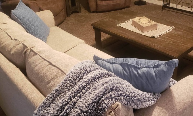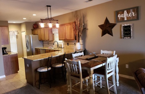 2 bedroom, 2 bath condo with all the amenities of home. Condo has recently been updated with fresh paint, new carpet and stainless steel appliances. Master bedroom has a king bed with a 42" flat-screen TV with Chromecast attached. Guest bedroom has a king bed with a 26" flat-screen, wall-mounted TV. Family room has a 50" flat-screen Roku smart TV with a pull-out couch and 2 comfortable recliners. With the open concept layout where the dining table is between the kitchen and living area, every one can be a part of the fun!