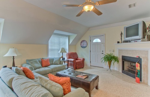 Off the living room is an additional den area with two futons. The queen bedroom is just down the hall. The master suite features a king bed and a large bath with tub and shower.